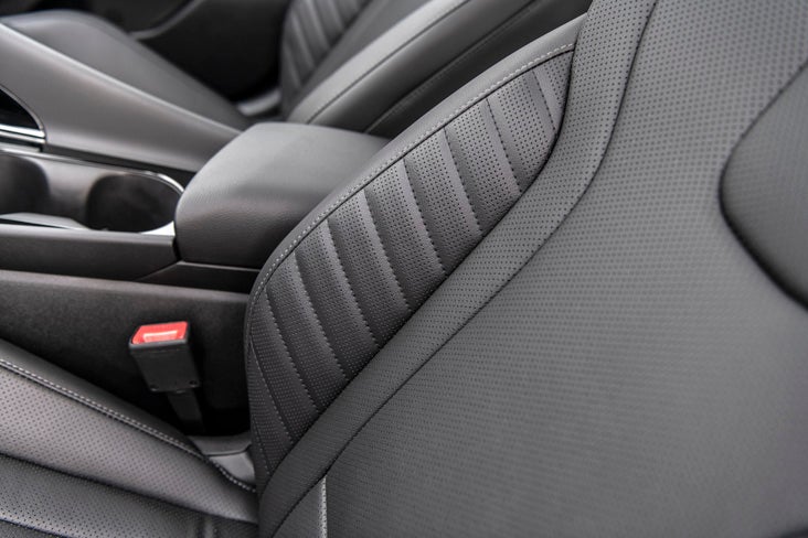 The seats use premium cloth that's both comfortable and durable. They offer good support for longer drives without feeling overly firm. The tilt-and-telescoping urethane steering wheel adjusts easily to fit different driving positions, and the controls for audio and cruise are right at your fingertips.