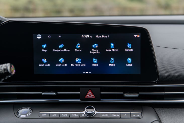 All trim levels of these affordable hybrids prioritize cutting-edge technology, with a strong focus on the dash. The base SE edition features an 8-inch high-resolution touchscreen. New for 2026, it fully supports wireless Android Auto and Apple CarPlay. So you can put away pesky cords and just enjoy seamless connectivity. Also new for 2026, Elantras have high-speed USB-C ports for both rows to keep your smart devices charged.